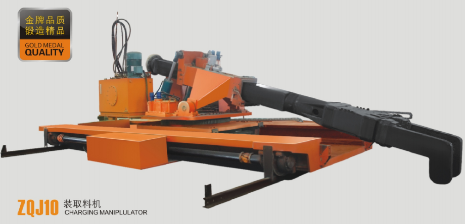 ZQJ10裝取料機有軌全液壓混合式鍛造裝出料機,可以通過七種動作:大車行走、小車行走、小車回轉、鉗桿升、鉗桿降、鉗口夾···